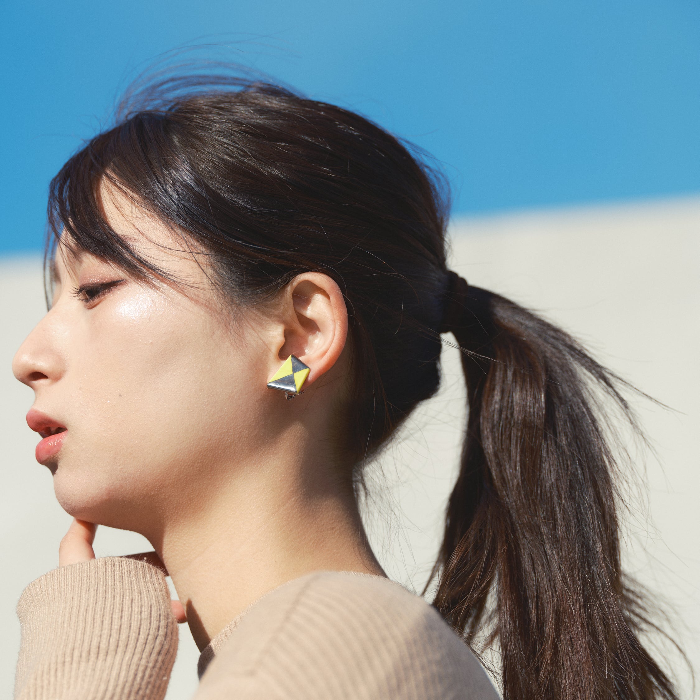【eb2】Lサイズ 染錦 ミモザ イヤリング/ピアス/ノンホールピアス